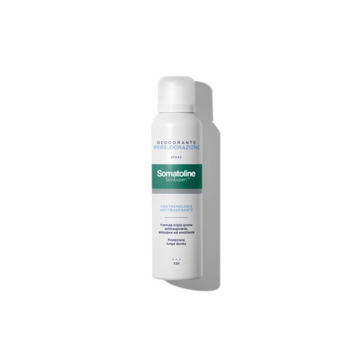 Somatoline SkinExpert Deodorante Ipersudorazione Spray: la protezione antitraspirante tripla azione 72h per chi soffre di sudorazione eccessiva, con formula emolliente dermatologicamente testata.