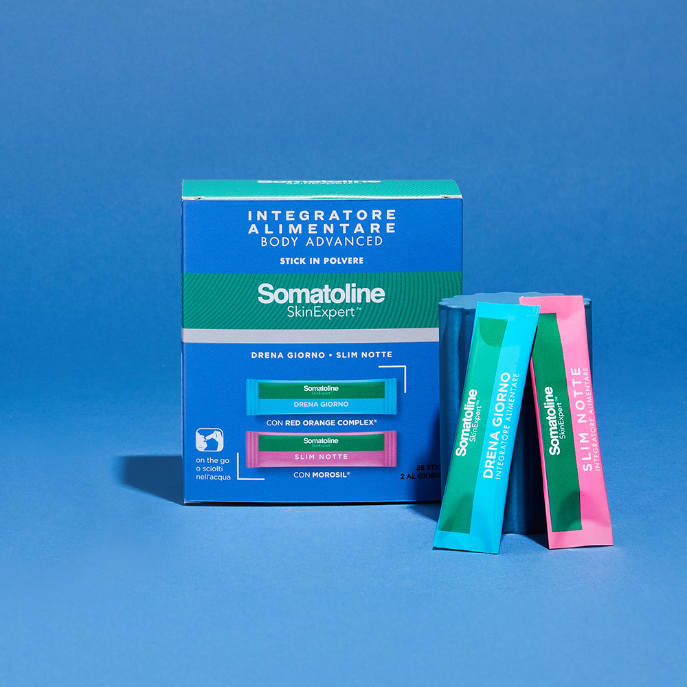 Somatoline SkinExpert ha formulato un integratore giorno e notte drenante e snellente, studiato per offrirti un’azione combinata a 360° e sostenere il tuo corpo in ogni fase della giornata.