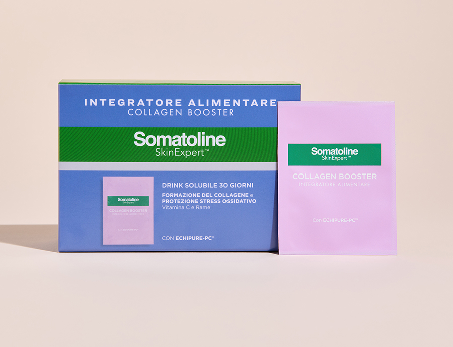Non semplici integratori con collagene, ma una formula avanzata: il nuovo Somatoline SkinExpert è studiato con una selezione di ingredienti innovativi e ad alte performance tra cui un fitoestratto registrato che aiuta a stimolare la fisiologica produzione di collagene e a proteggerlo dai processi di degradazione, favorendo il benessere della pelle.