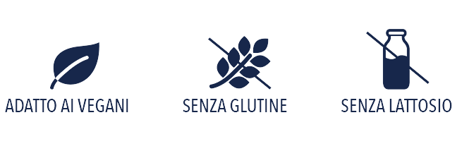 Senza lattosio, senza glutine, adatto ai vegani, non indicato in gravidanza e allattamento.