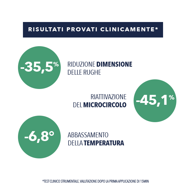 Riduce la dimensione delle rughe del 35,5%, migliorando la levigatezza cutanea;