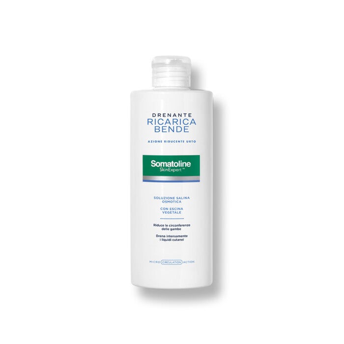 La soluzione salina osmotica concentrata di attivi dall'efficacia drenante intensiva da utilizzare per ricaricare le Bende Drenanti Somatoline SkinExpert, 3 trattamenti.